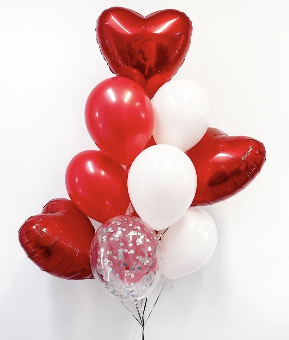 Букет шаров с красными сердцами